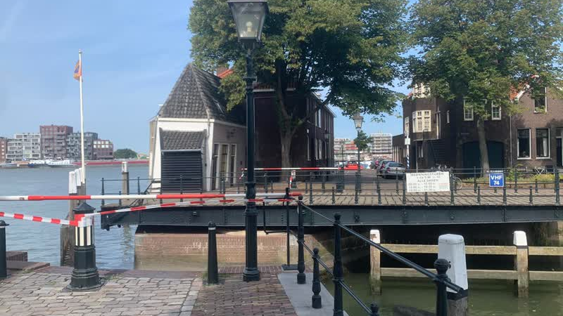 De monumentale brug, voor de Grote Kerk richting Maartensgat en de Hooikade, is kapot. De Mazelaarsb...