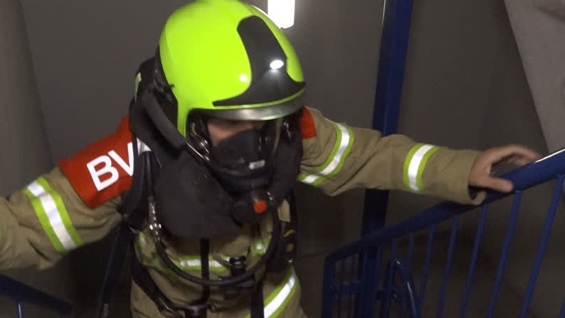 Luchtflessen op de rug, ademen door een masker, en dan nog eens twee keer driehonderd traptreden bek...