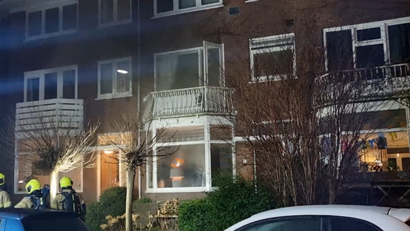 Veel rook zondagmiddag in de Van Baerlestraat. De brandweer rukte uitvoor een woningbrand, die onts...
