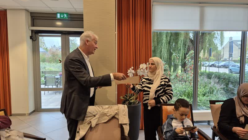 Bij woonzorgcentrum Riederborgh in Ridderkerk zijn vijf statushouders feestelijk in het zonnetje gez...