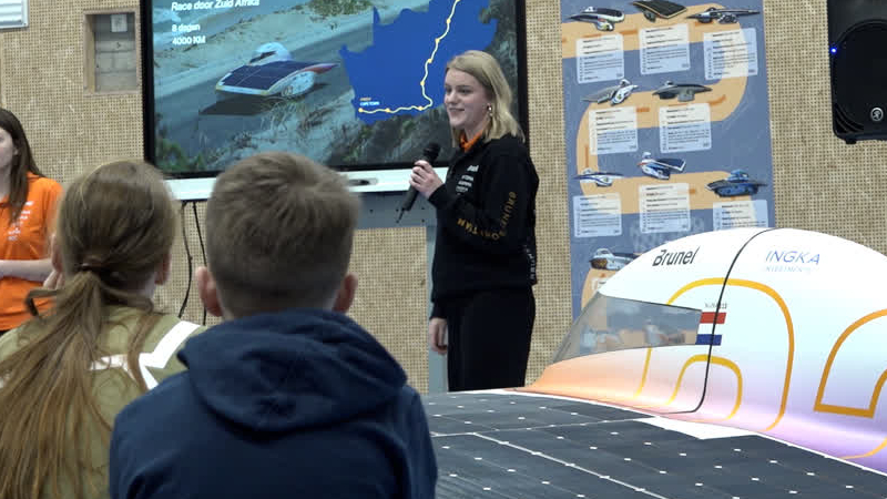 De zonneauto rijdt dit najaar in Zuid-Afrika, maar maakte een tussenstop bij de gymzaal van het Walb...