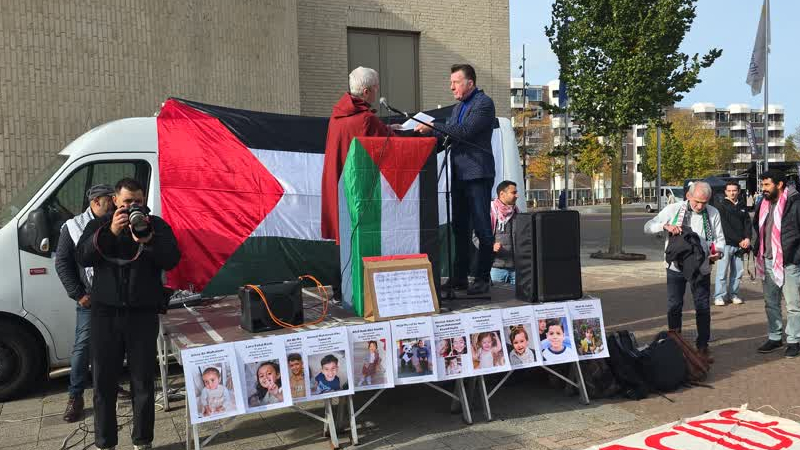 Enkele tientallen mensen hebben zaterdagmiddag een protest gehouden tegen de productie van onderdele...