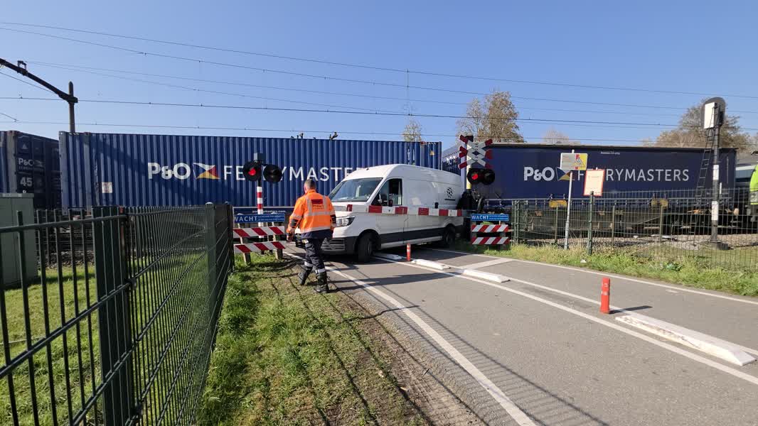 Een goederentrein is dinsdagmiddag rond 13.20 uur in botsing gekomen met een bestelbusje. Dit gebeurde op de spoorovergang aan de Zuidendijk in Dordrecht.
