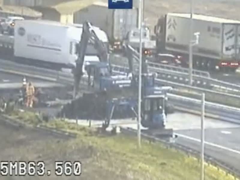 Dinsdagavond werd de weg afgesloten omdat grond onder de snelweg was weggespoeld. De weg kan hierdoor verzakken. De snelweg zou woensdagochtend om 05:00 uur weer opengaan, maar uit voorzorg bleef de weg langer dicht.