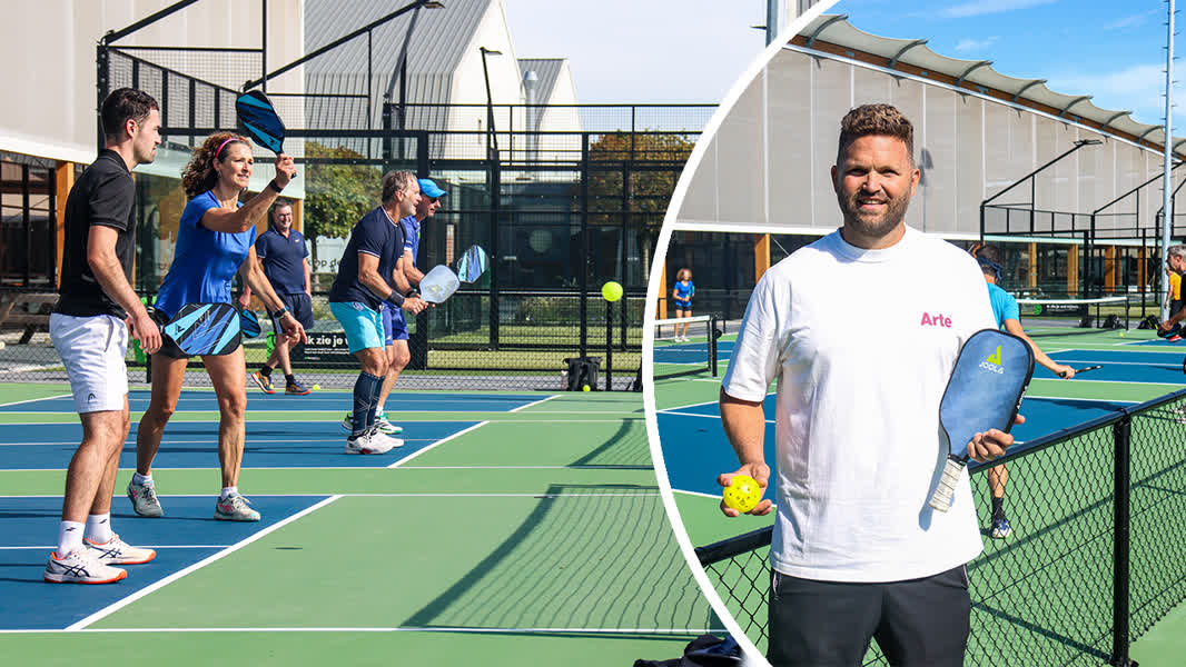 Pickleball? Bij velen zullen het woord de wenkbrauwen doen fronsen. "Het leent delen van tennis, padel en zelfs badminton”, legt pickleball-bondscoach Geert-Jan Van Dijken uit. De paddles - zoals de 'rackets' in de sport heten - zijn kleiner en hebben een midden dat meeveert. De bal is erg licht en heeft precies veertig gaatjes.