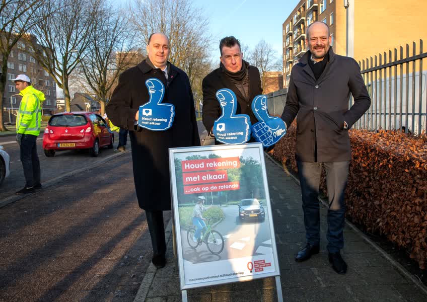 “Rekening houden met elkaar in het verkeer gaat verder dan alleen het naleven van de verkeersregels. Dat gaat ook over oogcontact, een handje opsteken, een vriendelijk knikje en een glimlach. Door contact te maken kun je gevaarlijke situaties voorkomen. Dat geldt ook voor een rotonde zoals hier in Papendrecht.”, aldus Zevenbergen.