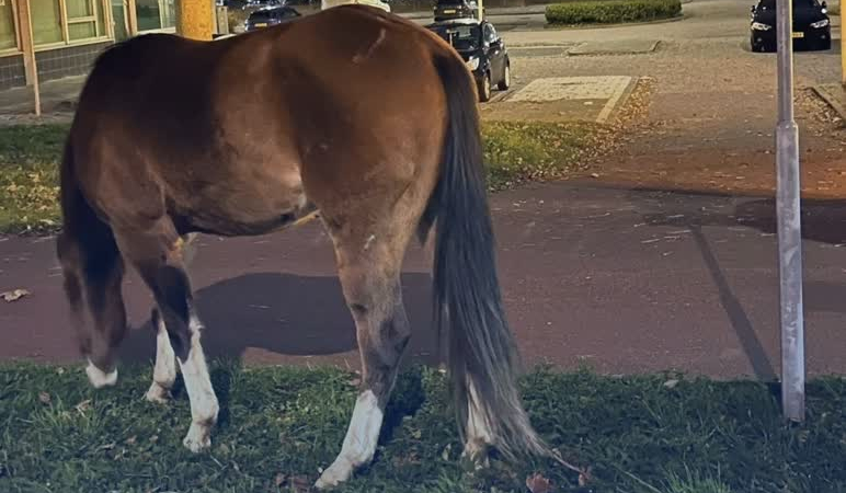 Twee paarden zijn maandagochtend aan de wandel gegaan in Papendrecht. De politie stuitte op de Burge...